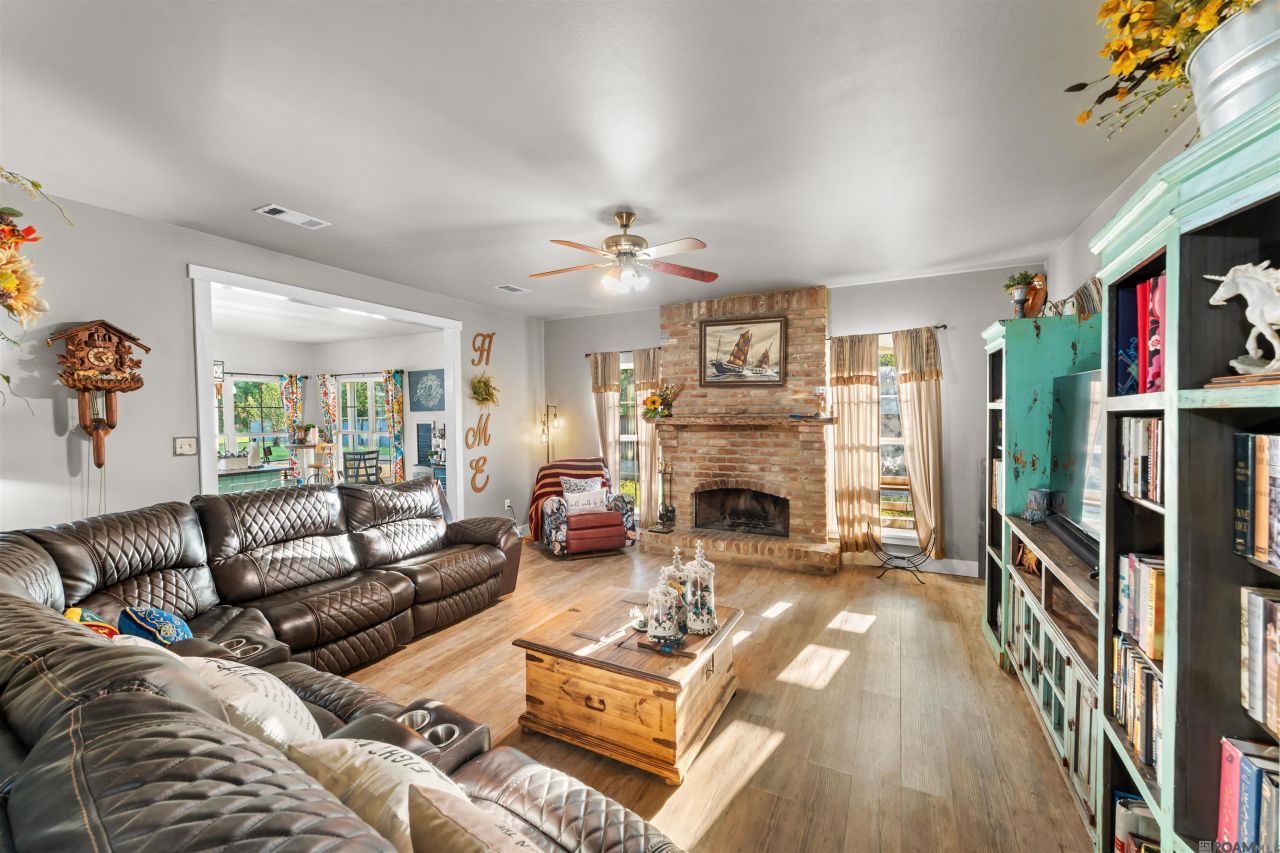 2.5% ASSUMABLE INTEREST RATE!!! Welcome to the sweetest farmhouse retreat, perfectly nestled on 1.5 peaceful acres! This charming 3-bedroom, 2.5-bath home is the perfect blend of comfort and character, offering all the space you need to relax and unwind. Step inside and you'll find a cozy living area centered around a beautiful wood-burning fireplace?ideal for cozy evenings and relaxing. The inviting kitchen and dining spaces flow seamlessly, making it easy to host dinners and gatherings. Outside, the classic wrap-around porch is perfect for sipping your morning coffee, rocking in the afternoon breeze, or watching the sun set over your private slice of paradise. Two spacious shops provide endless opportunities for hobbies, storage, or even a small business, while covered parking keeps your vehicles protected. With 1.5 acres to call your own, you'll have plenty of room to garden, play, or simply enjoy the peace and quiet. This isn't just a house?it's a lifestyle, waiting for you to make it yours. DID NOT FLOOD. QUALIFIES FOR 100% FINANCING.